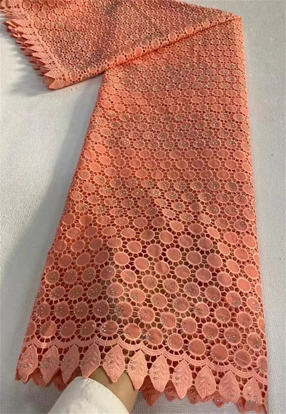 African Nigerian Lace Fabric – 5 Yards Cotton Lace with Rhinestones